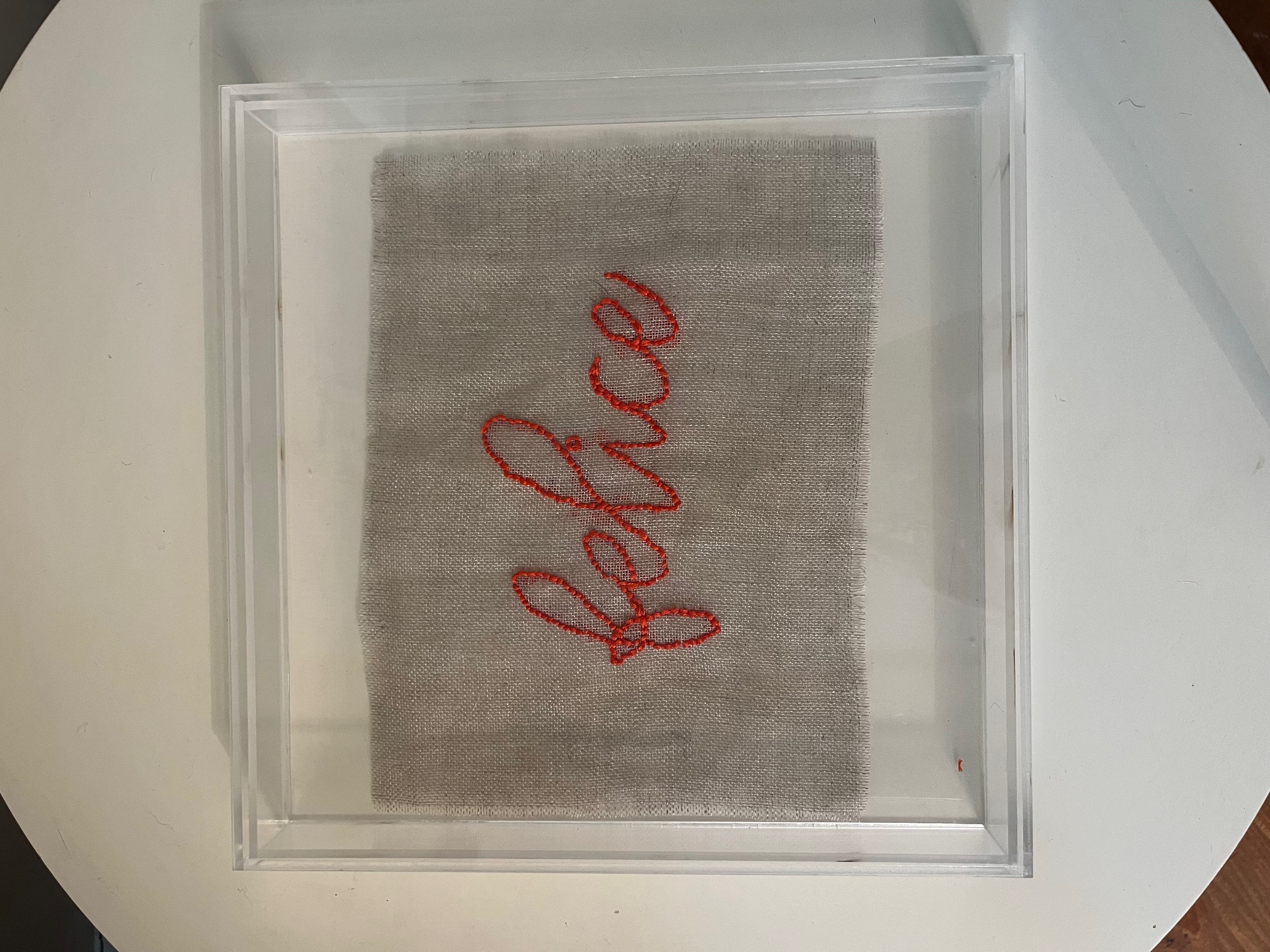 Caixa em Acrilico com tecido bordado Felice em tecido,